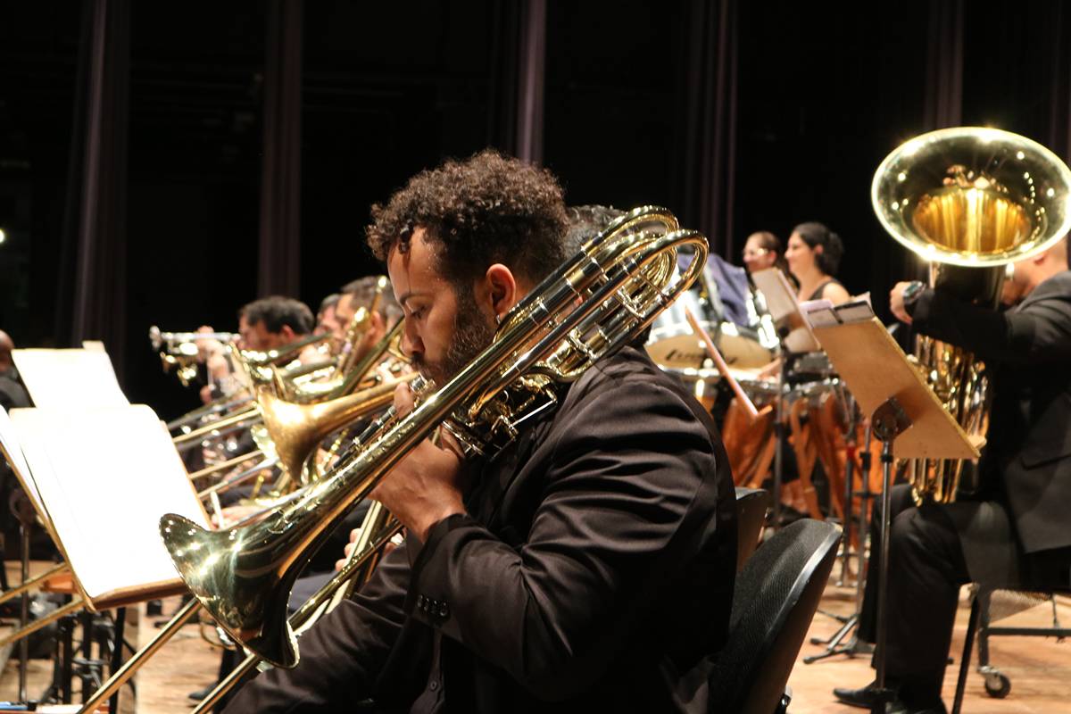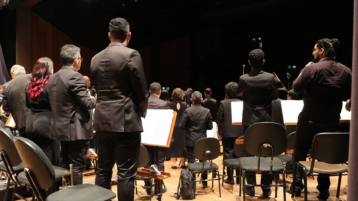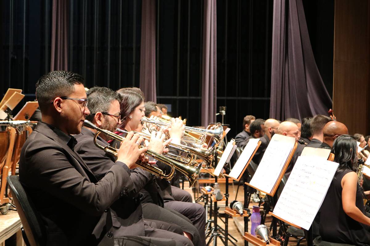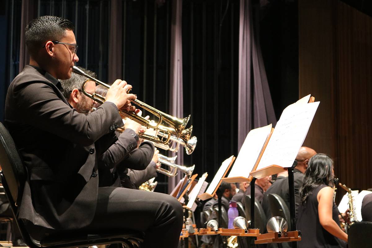 Na sexta-feira, dia 27 de setembro, a Banda Sinfônica da Unicamp realizou uma emocionante apresentação no Teatro Municipal Castro Mendes, em Campinas, como parte das festividades do “Mês Carlos Gomes”, em homenagem a um dos maiores nomes da música erudita brasileira. O público teve a oportunidade de presenciar uma apresentação única, que contou com obras do maestro homenageado e duas estreias mundiais: “Za Glavo” de Tiago ‘Djape’ Pallone e “Fantasia Brasileira Atemporal para duas Trompas e Banda Sinfônica” de Jackson Lúcio.