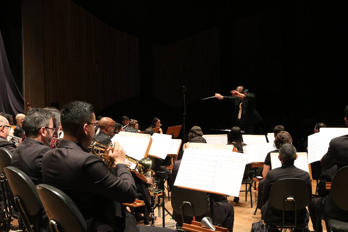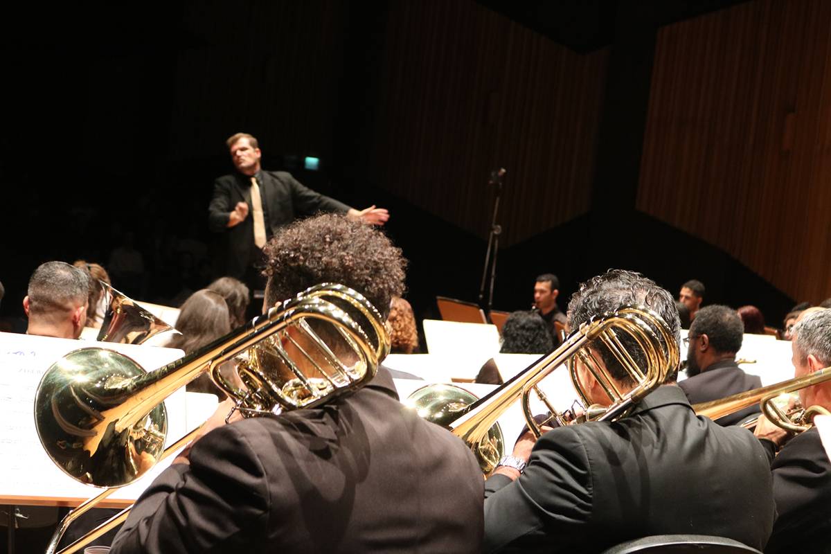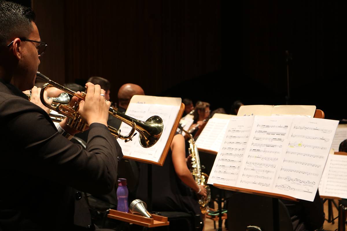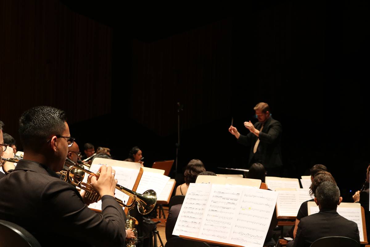 Na sexta-feira, dia 27 de setembro, a Banda Sinfônica da Unicamp realizou uma emocionante apresentação no Teatro Municipal Castro Mendes, em Campinas, como parte das festividades do “Mês Carlos Gomes”, em homenagem a um dos maiores nomes da música erudita brasileira. O público teve a oportunidade de presenciar uma apresentação única, que contou com obras do maestro homenageado e duas estreias mundiais: “Za Glavo” de Tiago ‘Djape’ Pallone e “Fantasia Brasileira Atemporal para duas Trompas e Banda Sinfônica” de Jackson Lúcio.