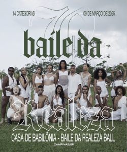 A Internacional Real Casa de Babilônia completa quatro anos de fundação em 2025 e, no dia 09 de março, às 16h, comemora seu Baile da Realeza no CIS-Guanabara. A apresentação, que será aberta ao público, contará com a competição de 14 categorias da dança ballroom, escolhidas por suas estéticas e performances, que representam as quatro partes da Casa: “Das Águas”, “Da Realeza”, “Da Bruxaria” e “Das Rainhas”. A competição trará sete jurados escolhidos conforme a sua importância na dança ballroom de Campinas.