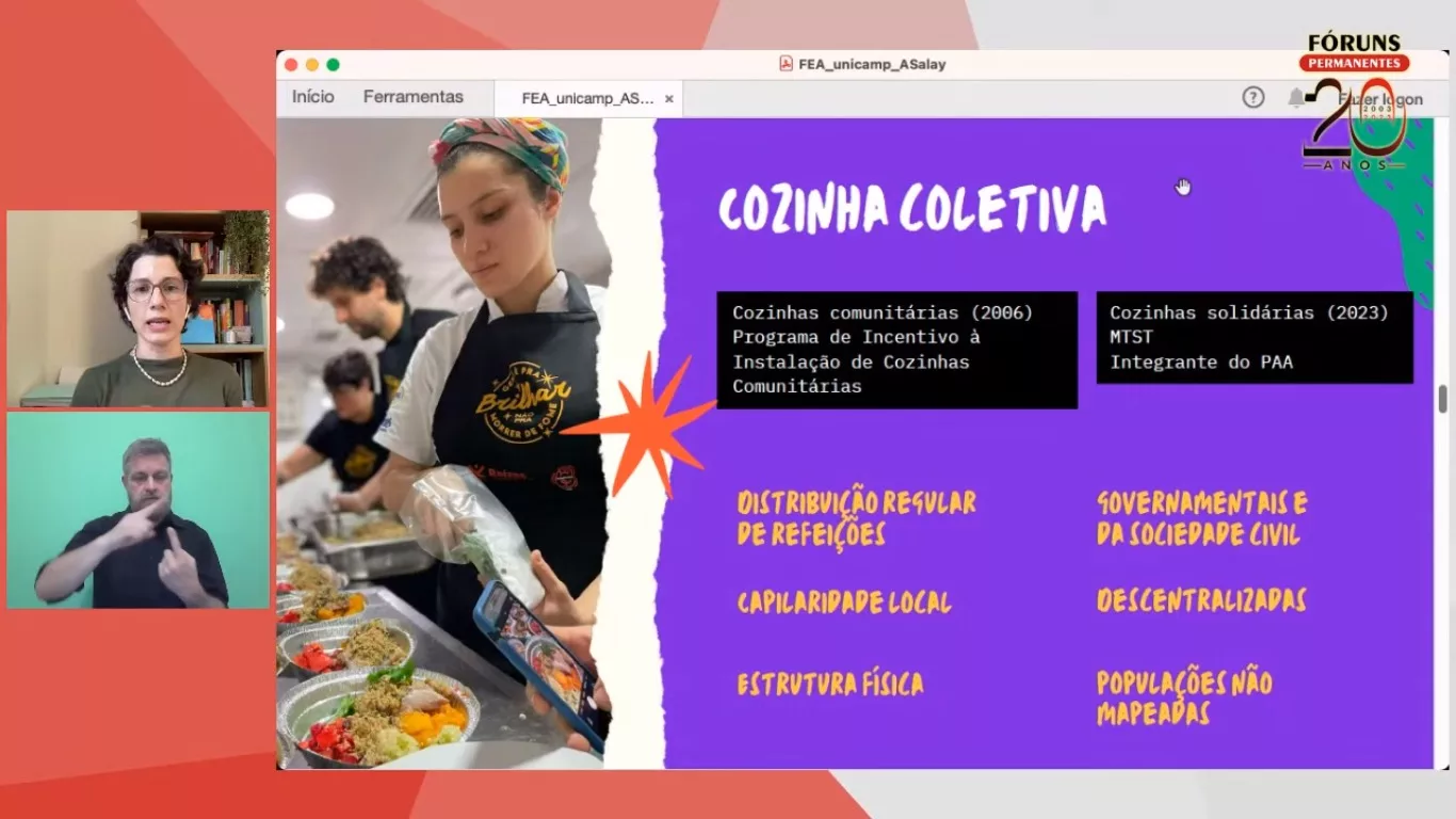 A antropóloga social Lis Furlani Blanco (Unicamp) apresentou um histórico sobre o agravamento da fome no país. “Olhar para os momentos de crises é fundamental para vermos nossos desafios futuros”, afirmou.