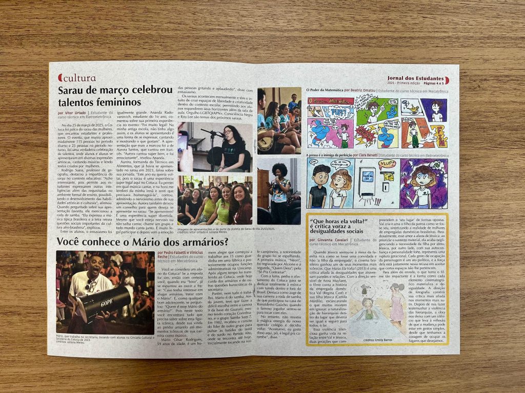 Neste primeiro semestre de 2025, o Colégio Técnico de Campinas (Cotuca) lançou a primeira edição do Jornal dos Estudantes (JOE), um projeto de extensão idealizado pelas professoras Juliana Meres Costa, Carolina Molinar Bellocchio e Simone Rodrigues Vianna Silva. A iniciativa contou com apoio da Pró-Reitoria de Extensão e Cultura (ProEEC), por meio do 2° Edital dos Colégios Técnicos da Unicamp, realizado no ano passado.