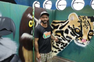 Desde o último domingo, Chorão vinha se dedicando à criação das obras, superando o desafio de pintar em espaços fechados e com tempo reduzido. “Sempre gostei de pintar a natureza, mas foi um grande desafio esse graffiti pelo espaço grande e pelo tempo curto. A partir das cores vibrantes, busco mostrar como é importante a preservação e a conservação da natureza”, contou Chorão. O Coletivo Curadoria Hip Hop é formado por cinco integrantes e tem como objetivo levar os quatro elementos do hip-hop — MC’s, DJ’s, breaking e graffiti — para a comunidade. A proposta é promover educação por meio da cultura e fortalecer os movimentos urbanos.