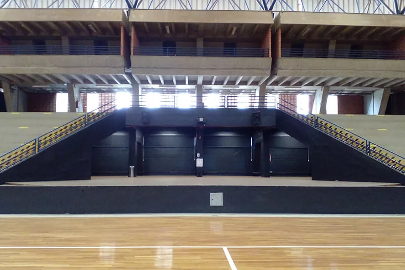 Com dimensão de 260m2, piso de madeira e uma cabine de audiovisual adjacente, o palco tem um caráter multifuncional na medida em que é utilizado para aulas de dança, teatro, apresentações artísticas, palestras, etc, oferecendo recursos como microfones, caixa de som, tela de projeção e projetor.