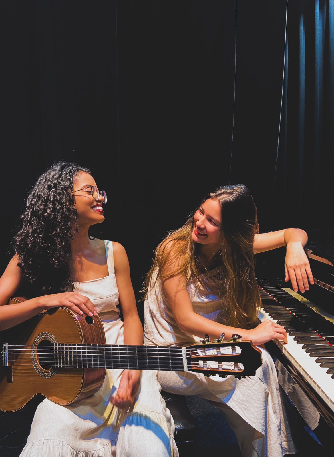 A combinação inusitada de música instrumental com piano e violão torna o Duo de Marjô Mariano e Laurie Oliveira um projeto desafiador e pioneiro. A proposta visa a promover a música não cantada e a criar um duo feminino de piano e violão, dois instrumentos harmônicos capazes de produzir várias notas simultaneamente. O projeto se fundamenta em duas vertentes principais: performance e formação. Estudantes de música no Instituto de Artes (IA) da Unicamp, elas submeteram e conquistaram apoio para seu projeto, “Entre o Céu e o Solo”, no Edital Dcult de Arte e Cultura 2024/2025, contemplado pela Pró-reitoria de Extensão, Esporte e Cultura (ProEEC). Laurie comenta: “Ambos os instrumentos oferecem inúmeras possibilidades sonoras, o que torna os processos de composição e arranjo mais complexos, mas também mais ricos e inspiradores”.