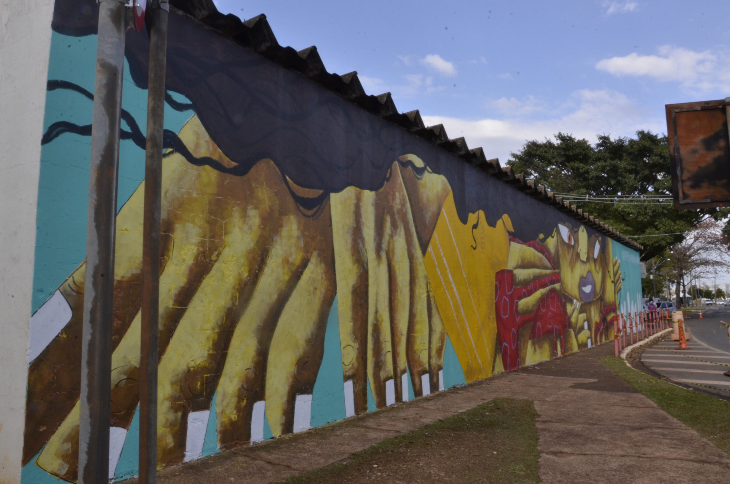 Responsável pelo mural do HC, o artista Fabiano Carriero explica que sua proposta foi pensada a partir de três esboços, sendo escolhido aquele que dialogava de forma mais sensível com o espaço hospitalar. “O desenho traz a frase ‘Não pare, tem flores na rua’. É uma inversão simbólica: ao invés de proibir, convida a seguir adiante. É um convite para perceber a beleza no caminho, mesmo em meio às dificuldades”, afirmou.