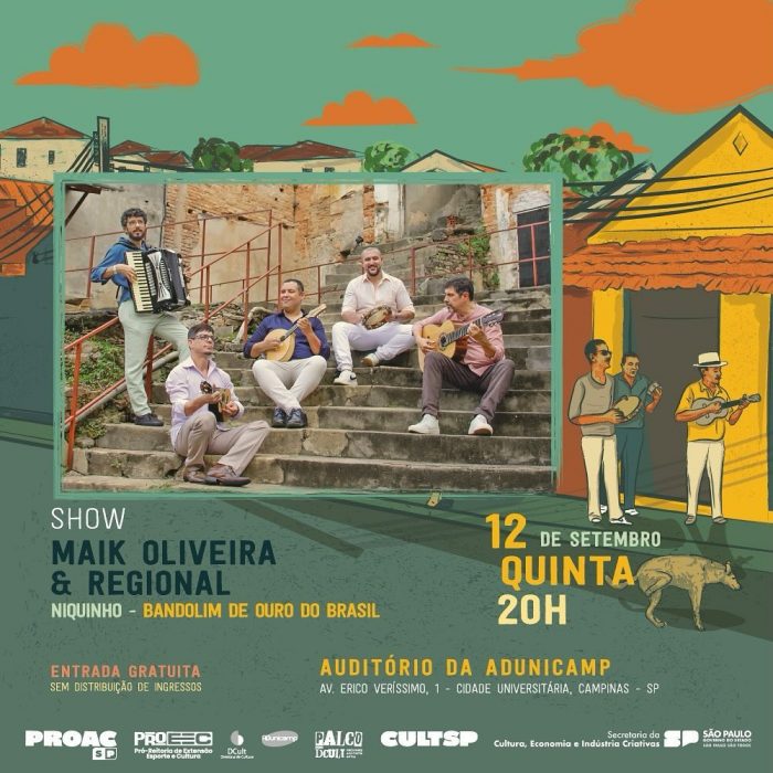 A cidade de Campinas recebeu o show de Maik Oliveira & Regional no dia 12 de Setembro, no Auditório do Adunicamp. O repertório da apresentação seguiu à risca o que o público poderá ouvir no disco, que tem previsão de lançamento para o mês de Outubro. São diversos gêneros do universo do choro: valsa, choro sambado, samba-choro, baião e polca ligeira, embalados por Maik Oliveira, no bandolim; Agnaldo Luz, no cavaco; Edmilson Capelupi no violão 7 cordas; Pedro Pita no pandeiro e percussão e Cleber Silveira no acordeon.