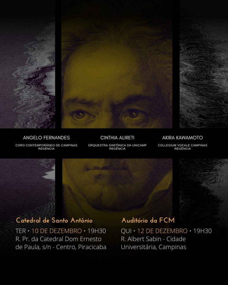 A Orquestra Sinfônica da Unicamp (OSU), sob a regência da maestrina Cinthia Alireti, se une ao Coro Contemporâneo de Campinas, regido por Angelo Fernandes, e ao Collegium Vocale Campinas, sob a direção de Akira Kawamoto, para dois concertos especiais em dezembro. As apresentações acontecem no dia 10 de dezembro, às 19h30, na Catedral de Santo Antônio, em Piracicaba, e no dia 12, também às 19h30, no Auditório da FCM, em Campinas.
