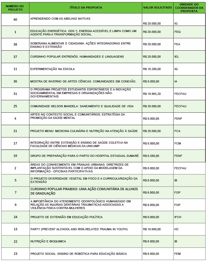 Apoiar financeiramente projetos relacionados à curricularização da Extensão na grade curricular dos cursos de Graduação da UNICAMP.