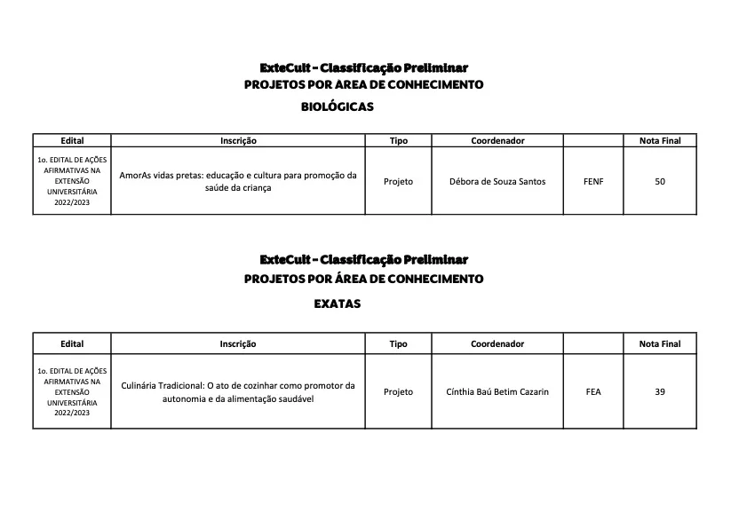 O presente edital visa o apoio financeiro de ações de “Extensão – Ações Afirmativas”, coordenados por docentes e pesquisadores da UNICAMP, cuja execução terá início em Janeiro de 2023, com duração de 12 (doze meses).