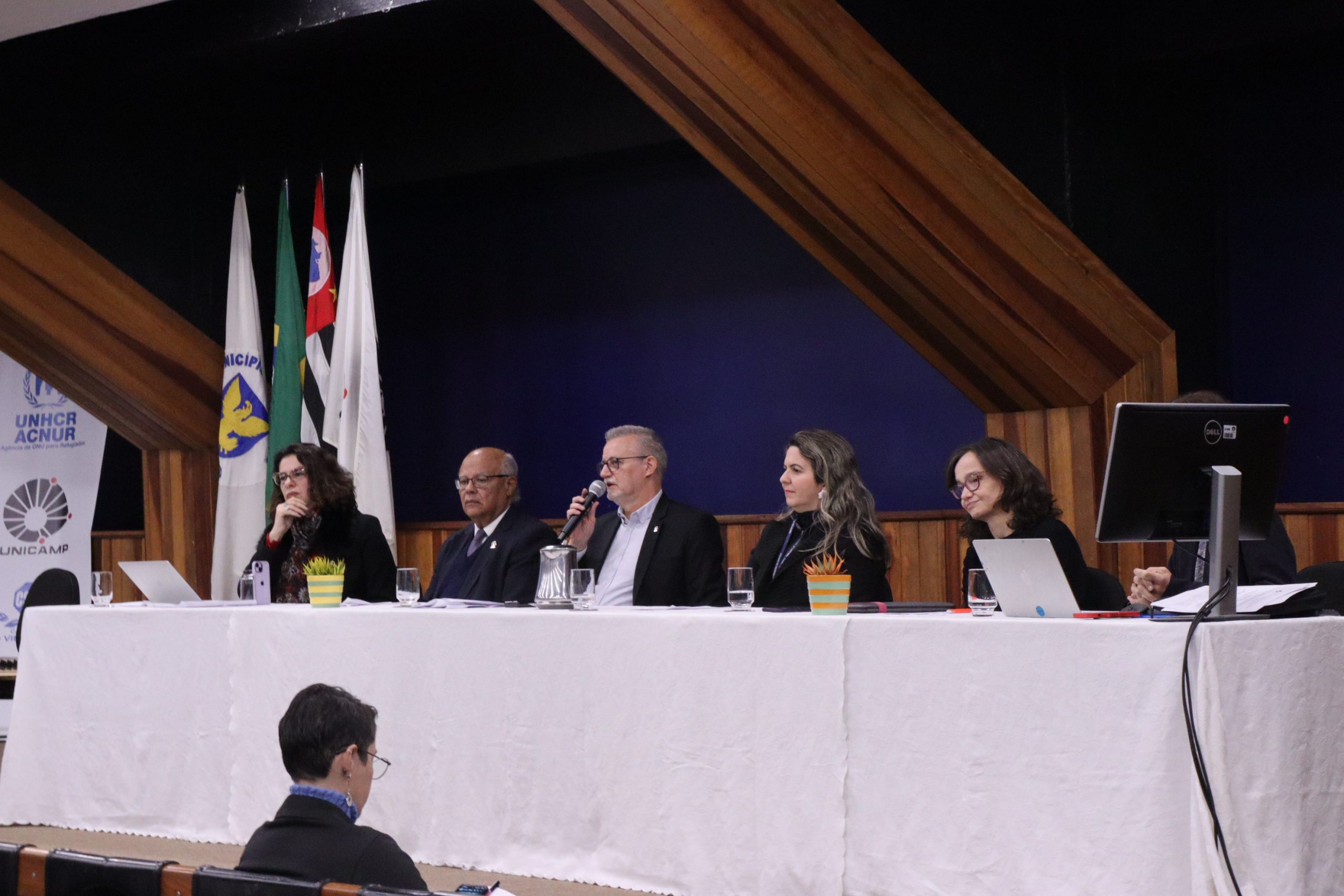 O Fórum Permanente “Imagens e pagamentos do refúgio contemporâneo” aconteceu no dia 13/08, no Centro de Convenções da Unicamp. O debate proposto pelo evento foi multidisciplinar, com uma reflexão colaborativa entre universidade, poder público, organizações internacionais, pessoas refugiadas e sociedade civil acerca dos deslocamentos forçados contemporâneos, inserindo o tema em uma perspectiva mais ampla, de debate público. A programação incluiu duas mesas: “Perspectivas de Acolhimento e Integração no Refúgio Contemporâneo” e “Protagonismo Migrante em Produções Artístico-Culturais”.