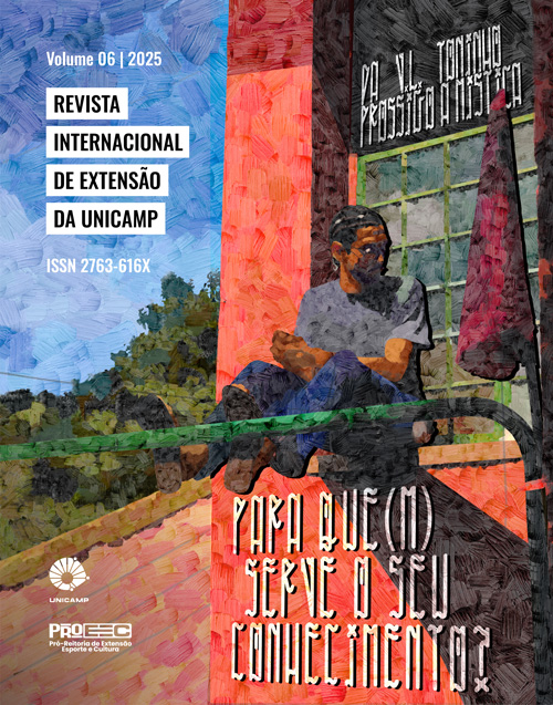 A Revista Internacional de Extensão da Unicamp é uma publicação científica vinculada à Pró-Reitoria de Extensão, Esporte e Cultura (ProEEC), dedicada à divulgação de produções acadêmicas como artigos e relatos de experiências. A revista adota o modelo de publicação em fluxo contínuo, o que significa que está aberta a submissões durante todo o ano. Os textos aprovados são publicados gradualmente e compõem a edição anual vigente. Assim, os próximos trabalhos submetidos e aceitos integrarão a 6ª edição da revista.