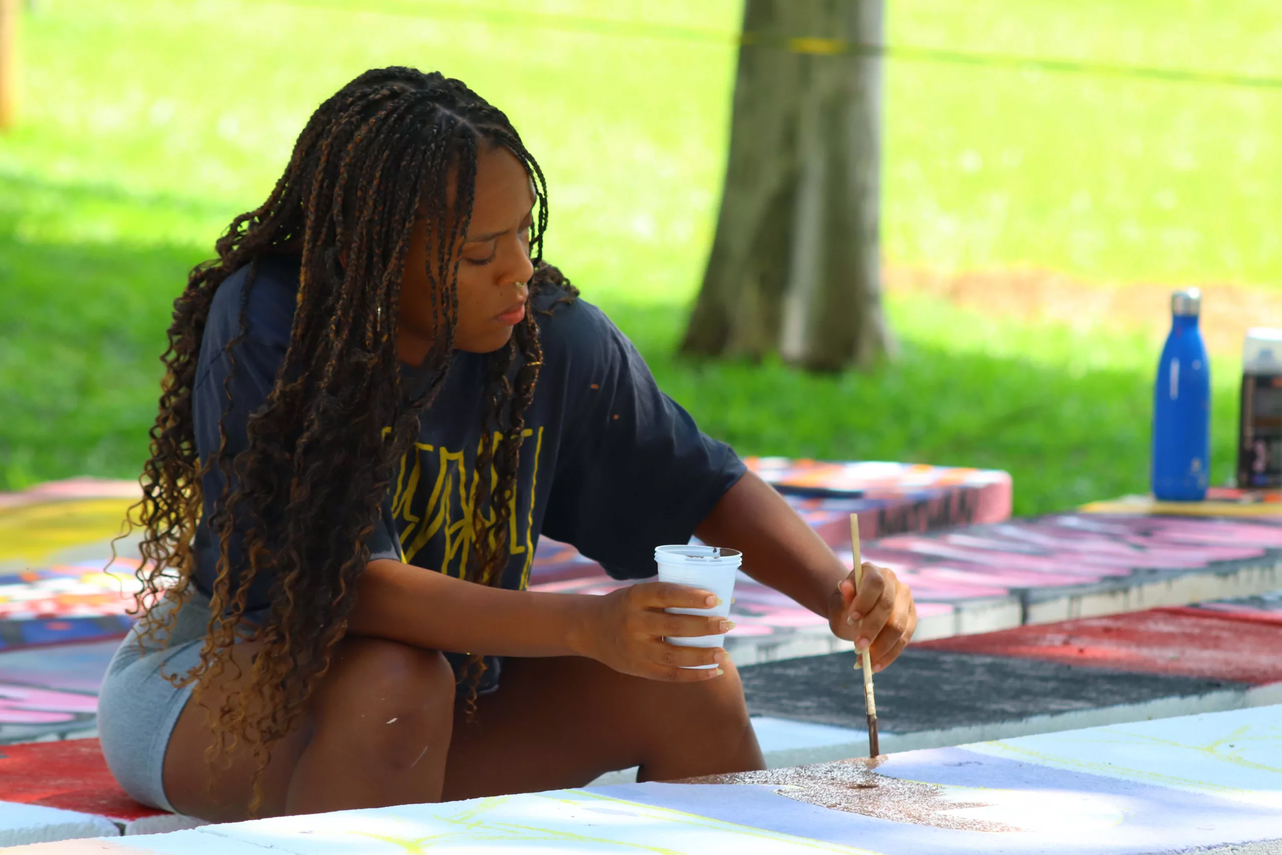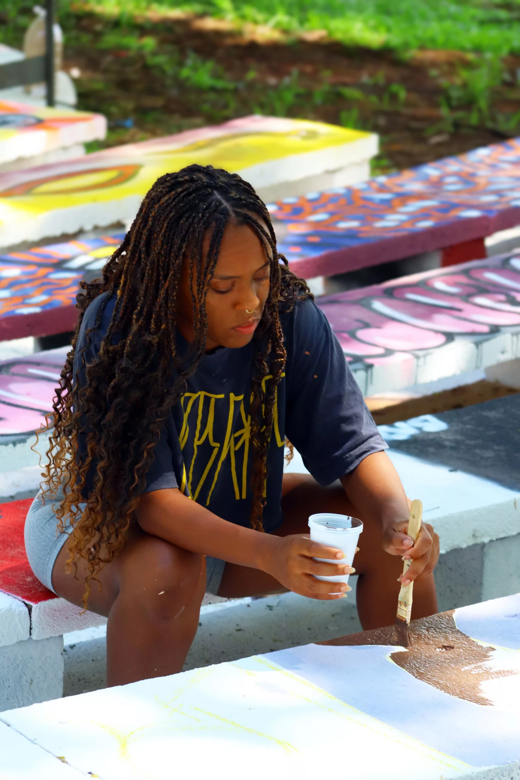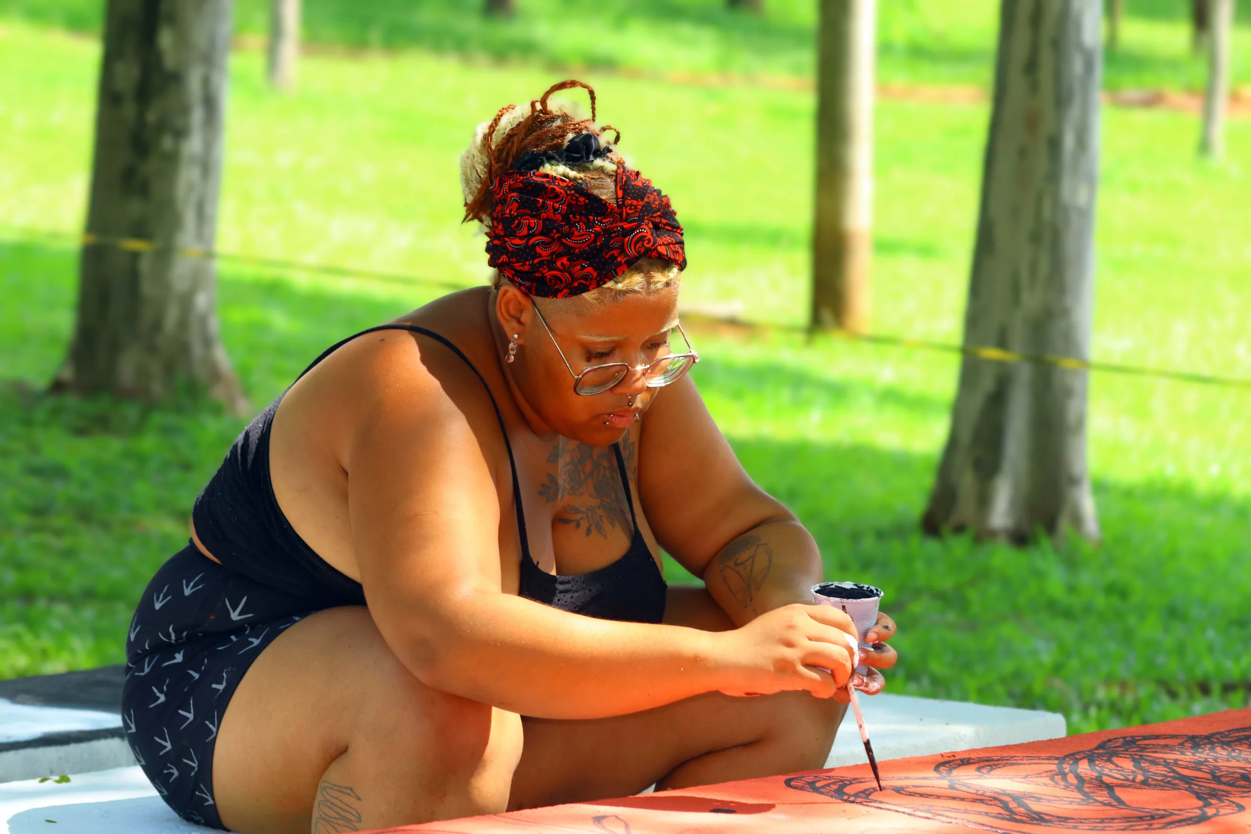 Professora Débora Cristina Jeffrey, da Faculdade de Educação, fala sobre a revitalização de um espaço, considerando-o um ato simbólico e relevante que permite atividades culturais, políticas e científicas. Convida todos para participarem das atividades no dia 28 de novembro, na Praça da Paz, destacando a presença de oficineiros e a semeadura de um novo Baobá como um ato de resistência, em conjunto com várias atividades dos coletivos negros.